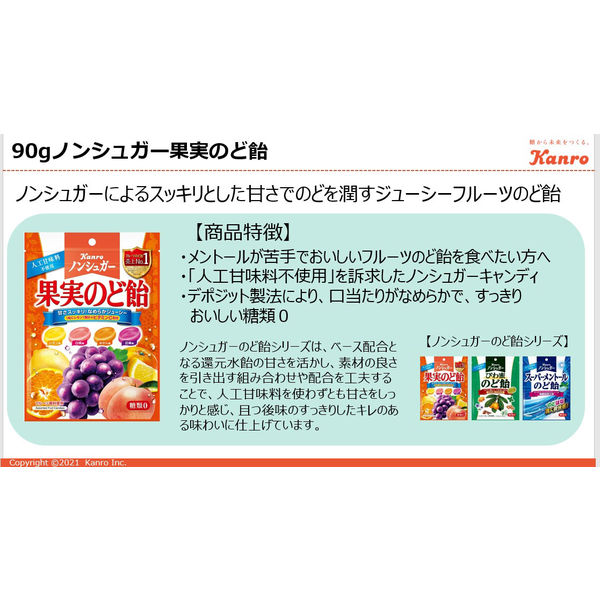 商品詳細 | 砂糖を使わず、果実本来の豊かな味わいをそのまま閉じ込めたのど飴です。ぶどう、りんご、もも、みかんの4種のフレーバーが楽しめ、カロリーが気になる方にもおすすめです。 ハーブの刺激がないので、ミント系の味が苦手な方でも美味しく召し上がれます。 |